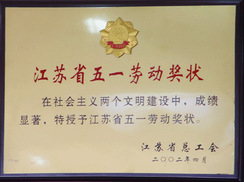 2002年度江蘇省五一勞動(dòng)獎(jiǎng)狀