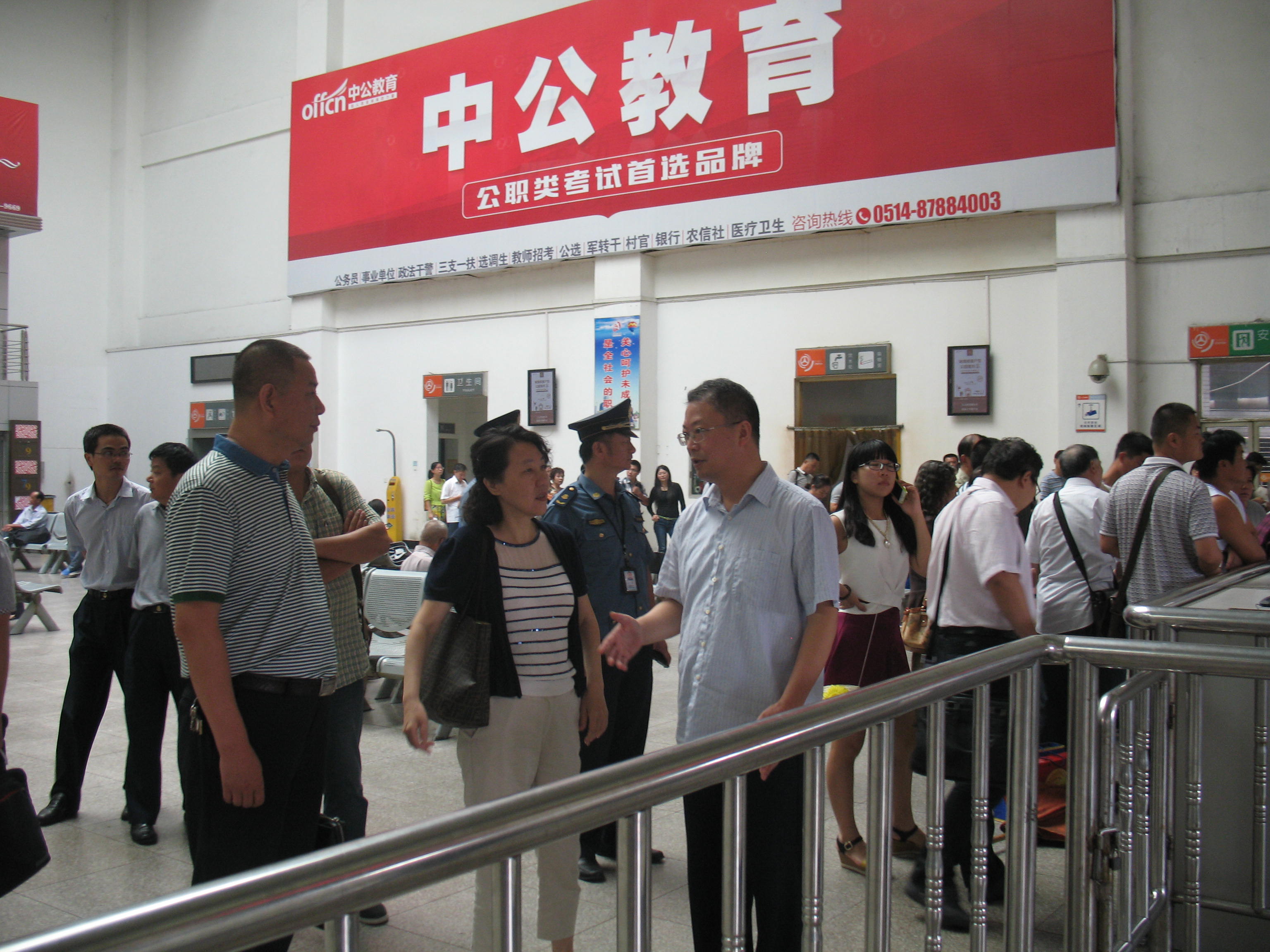 8月15日,省運(yùn)管局陶書記一行在集團(tuán)公司副總經(jīng)理蔡運(yùn)河的陪同下來到揚(yáng)州汽車站檢查青奧前的安保工作。陶書記先后對危險(xiǎn)品進(jìn)站情況、南京專線候車廳、下客區(qū)旅客出站口及監(jiān)控中心等多個崗位進(jìn)行了檢查,并對下一步工作進(jìn)行了指導(dǎo)。