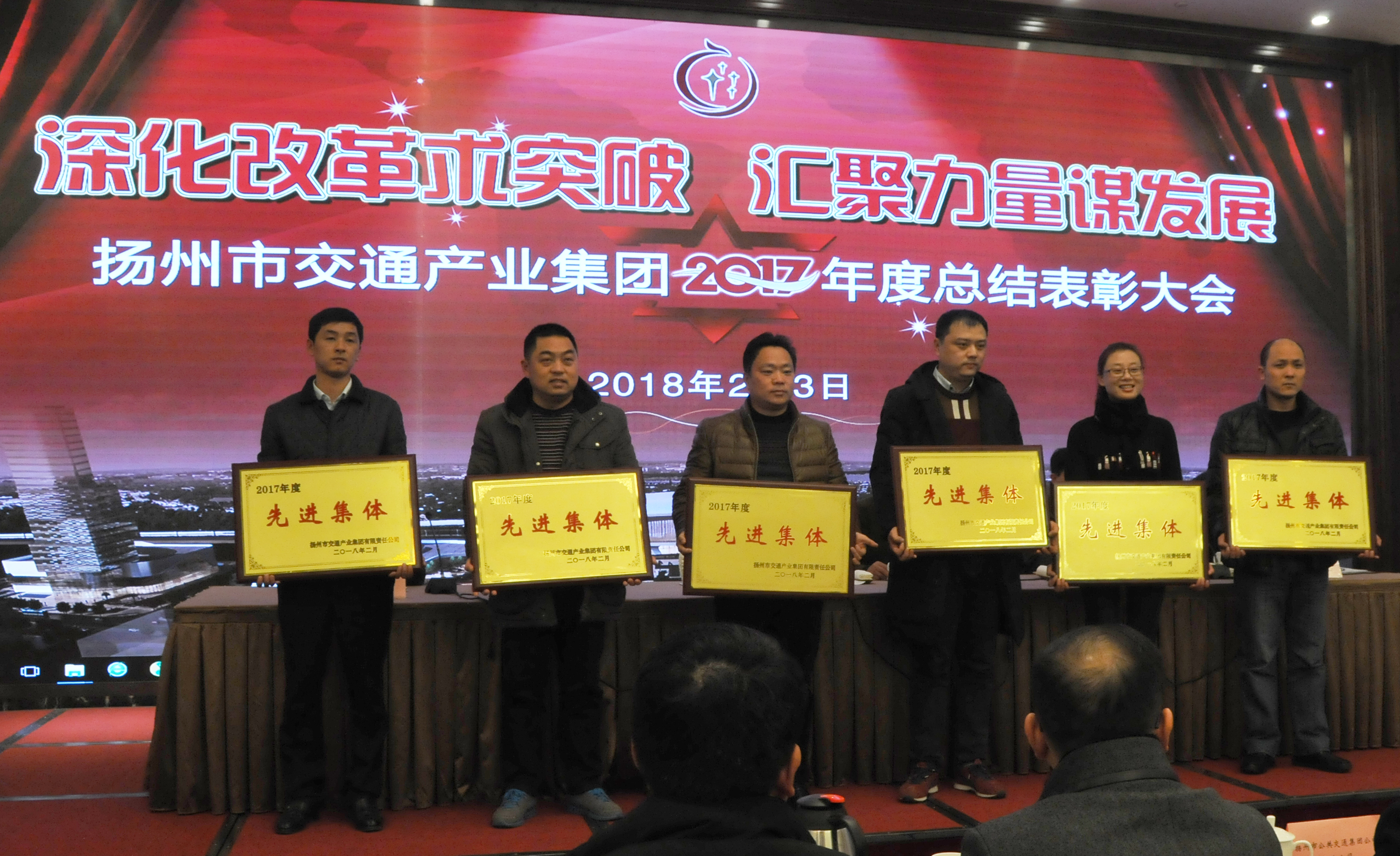 2月3日下午,揚(yáng)州市交通產(chǎn)業(yè)集團(tuán)2017年度總結(jié)表彰大會(huì)在二十四橋賓館玫瑰廳召開(kāi)。交通產(chǎn)業(yè)集團(tuán)領(lǐng)導(dǎo)班子及來(lái)自產(chǎn)業(yè)集團(tuán)各單位的領(lǐng)導(dǎo)、中層干部、青年骨干、受表彰人員200余人參加會(huì)議。揚(yáng)汽集團(tuán)揚(yáng)州站、東站、定制公司3家單位榮獲先進(jìn)集體,王甜甜等16人榮獲先進(jìn)個(gè)人。