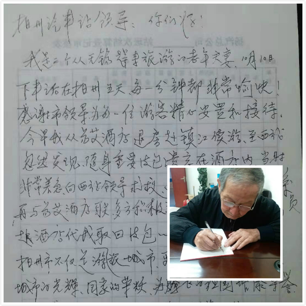 八旬老人寫(xiě)下文字感謝揚(yáng)州站工作人員
